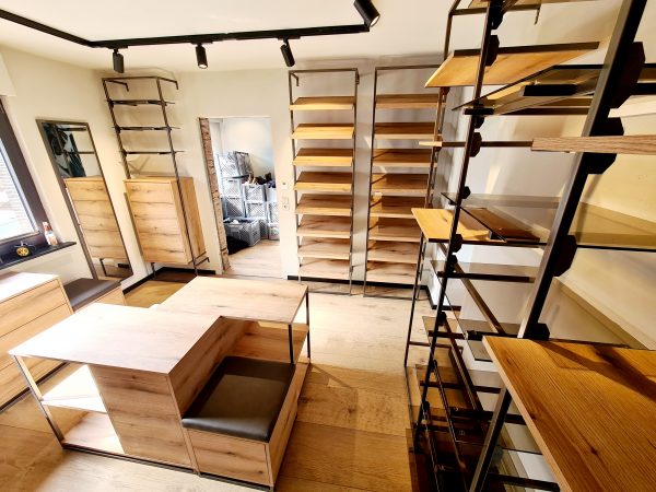 - Regalsysteme: Regale sind in jedem Geschäft wichtig, insbesondere in der Beleuchtungsbranche, da eine Vielzahl von Produkten mit unterschiedlichen Formen und Größen präsentiert werden muss. Regale können aus verschiedenen Materialien hergestellt werden, wie Holz, Metall oder Glas, und können an die Bedürfnisse des Geschäfts angepasst werden.
